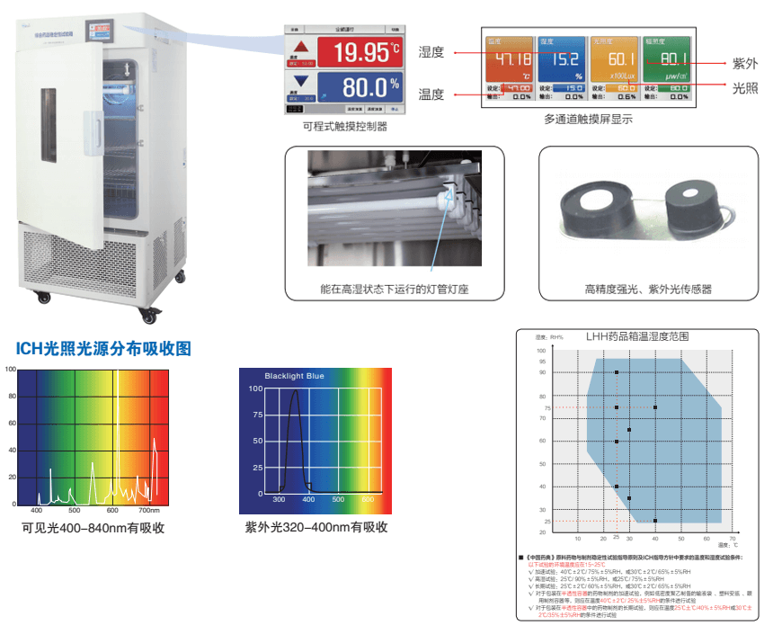 用途概述 一恒研發(fā)的綜合藥品光穩(wěn)定性試驗(yàn)箱(帶UV監(jiān)測與控制),在原一恒GSD\GSP\GP綜合穩(wěn)定性試驗(yàn)箱基礎(chǔ)上增加了可見光和紫外光的監(jiān)測與 控制,是制藥和化妝品企業(yè)進(jìn)行GMP認(rèn)證的必備設(shè)備。符合ICH指導(dǎo)原則中光穩(wěn)定性測試條件。