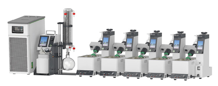 陣列旋轉(zhuǎn)蒸發(fā)儀 陣列旋轉(zhuǎn)蒸發(fā)儀可以搭載六個(gè) mini 旋轉(zhuǎn)蒸發(fā)儀單元,既可以滿足同時(shí)使用,也支持獨(dú)立操作,可以獨(dú)立 的進(jìn)行溫度設(shè)置、轉(zhuǎn)速調(diào)整、釋放真空等操作,不干擾其他旋轉(zhuǎn)蒸發(fā)儀單元的正常工作。
